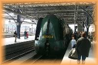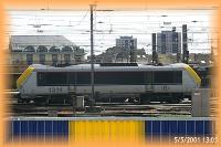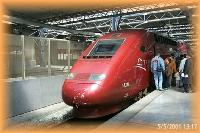 | Voici son poste de conduite! | Ca, c'est le TGV "D?ouvertes", qui faisait des allers - retours jusqu'a la fronti?e fran?ise,.. | et entre 2 se laissait visiter la cabine! | Au bout du quai, un signal avanc? |